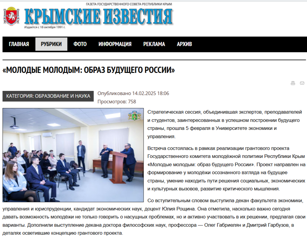 Крымские известия о проекте "Молодые молодым"