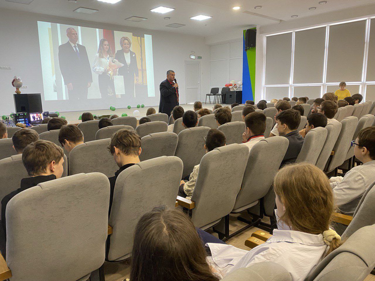 Встреча была посвящена теме герои и героическое на СВО. Лектор рассказал не только о героях-военнослужащих, но и о подростках получивших государственные награды за героические деяния с зоне СВО.
