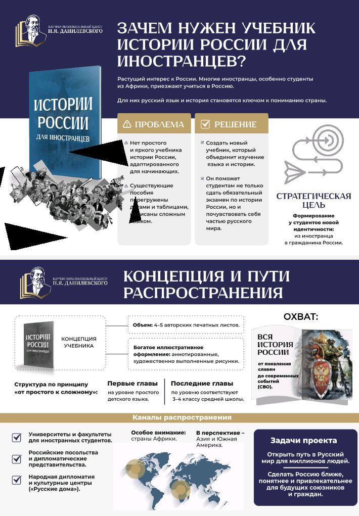 В своём докладе О. К. Шевченко представил инициативу по созданию современного учебника истории России для зарубежной аудитории. Такой проект способен открыть миллионам людей доступ к историко-культурному пространству Русского мира.